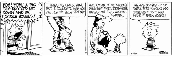 I like Calvin’s assessment, and I sympathize with him on this point, although I’m about 99% certain that I’ve been guilty of that very error from time to time. Perhaps I can justify myself here by claiming that I was trying to instill proper judgment in my children – I doubt that at the time they would have agreed.