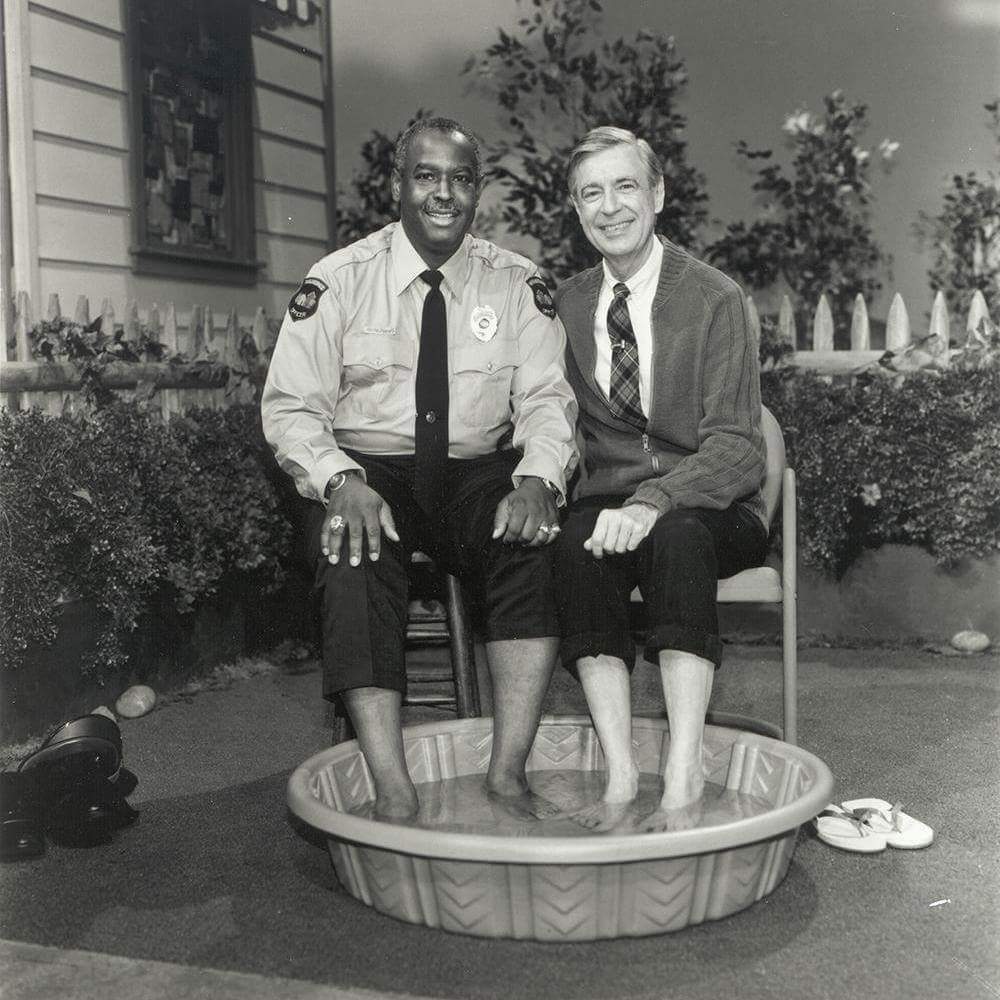 Clemmons remembers: “He invited me to come over and to rest my feet in the water with him.” He continued, with emotion, “The icon Fred Rogers not only was showing my brown skin in the tub with his white skin as two friends, but as I was getting out of that tub, he was helping me dry my feet.”