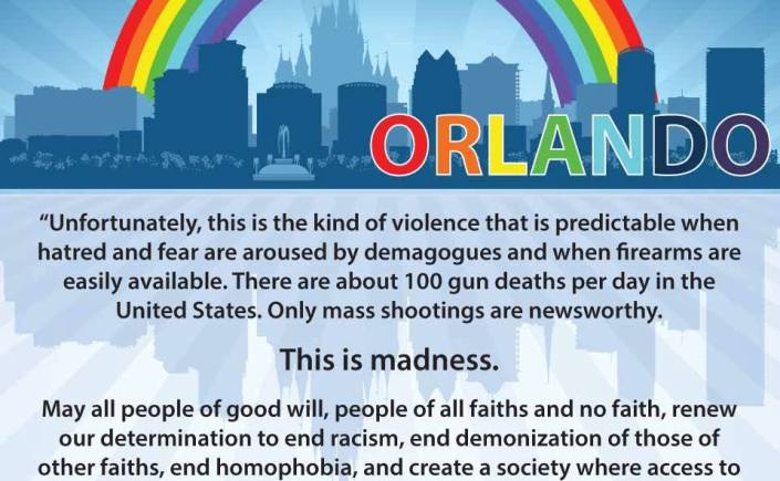 Here is the official UUA Statement from our President Rev. Peter Morales https://www.uua.org/pressroom/press-releases/orlando-mass-shooting-uua-president-offers-prayers-victims-community